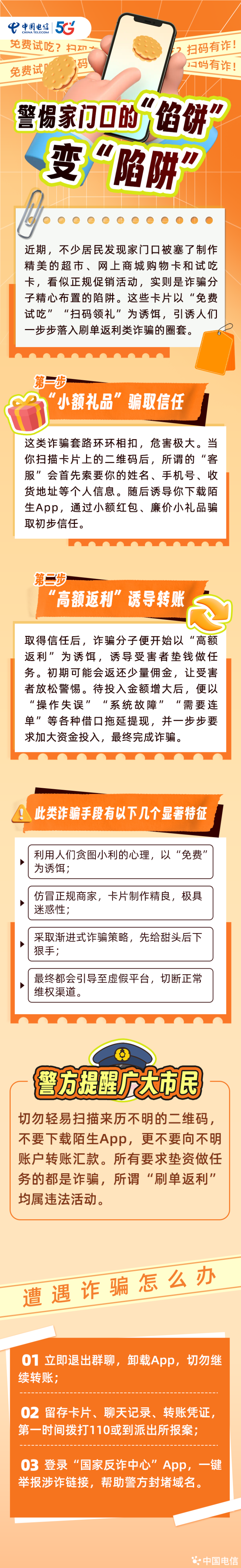 近期星火牛,不少居民发现家门口被塞了制作精美的超市、网上商城购物卡和试吃卡,看似正规促销活动,实则是诈骗分子精心布置的陷阱。这些卡片以“免费试吃”“扫码领礼”为诱饵,引诱人们一步步落入刷单返利类诈骗的圈套。